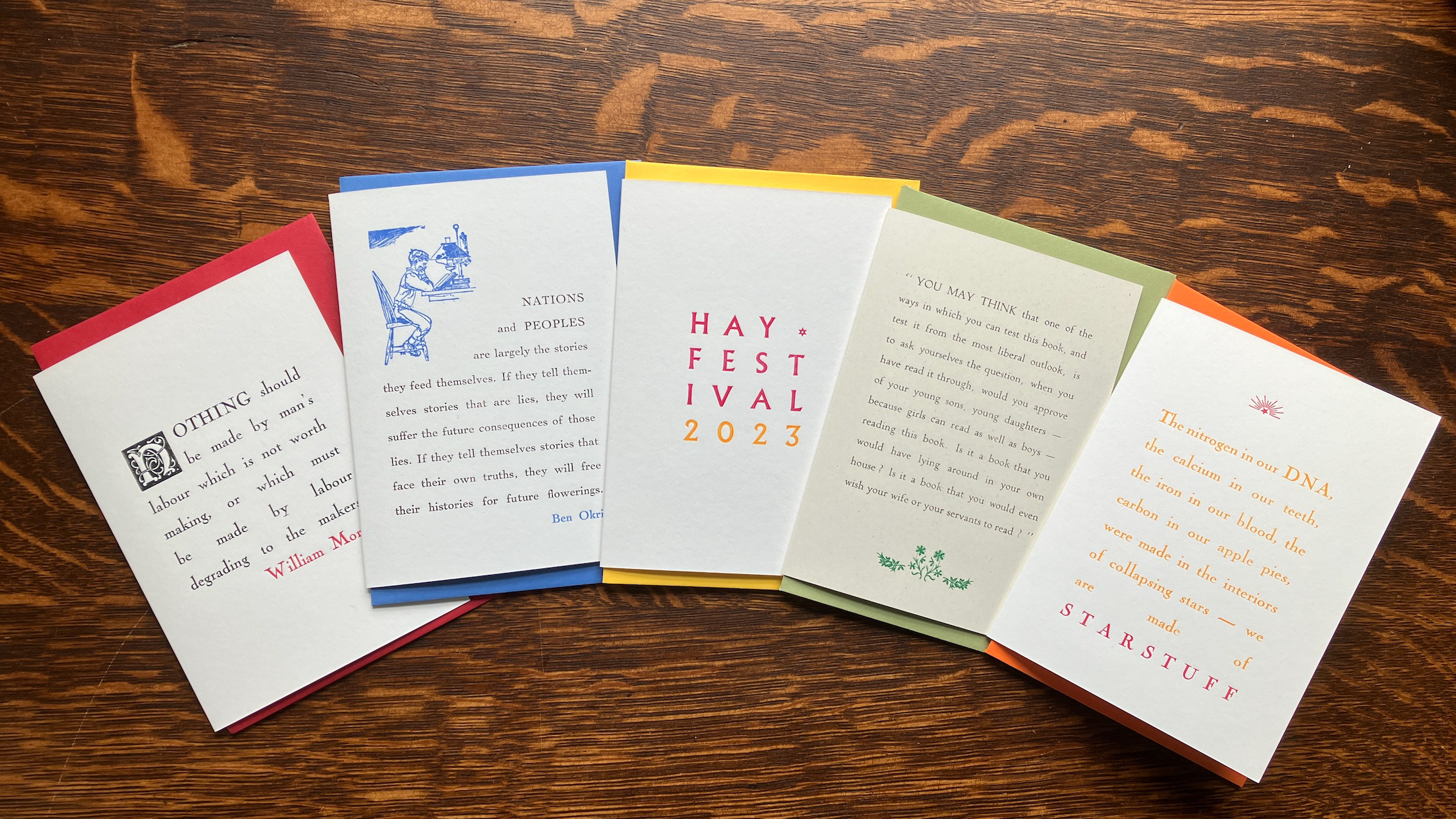 A diverse selection of cards, letterpress printed with hand-set metal type and antique image blocks