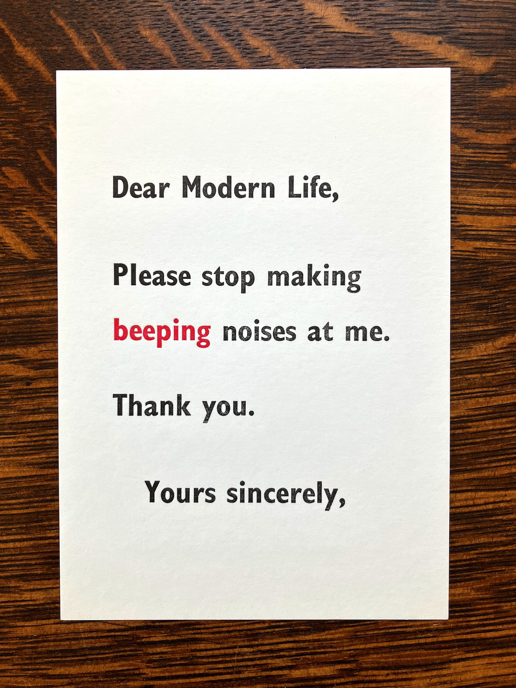 It started in a small way, but the beep has now become the unofficial soundtrack of the 21st century. Mostly it's just annoying and unnecessary. The words are mine but judging by how many I have sold already, I'm not alone.