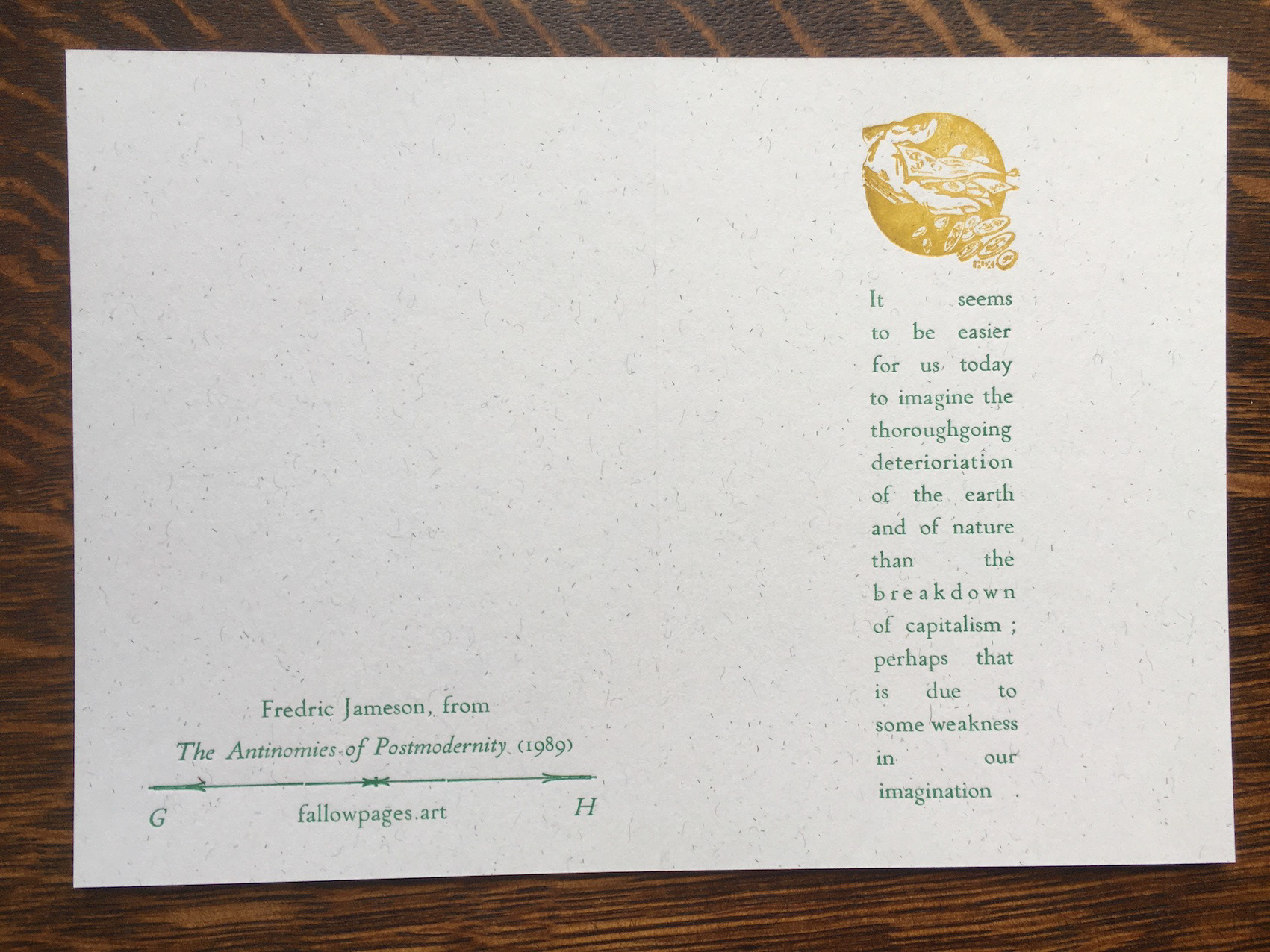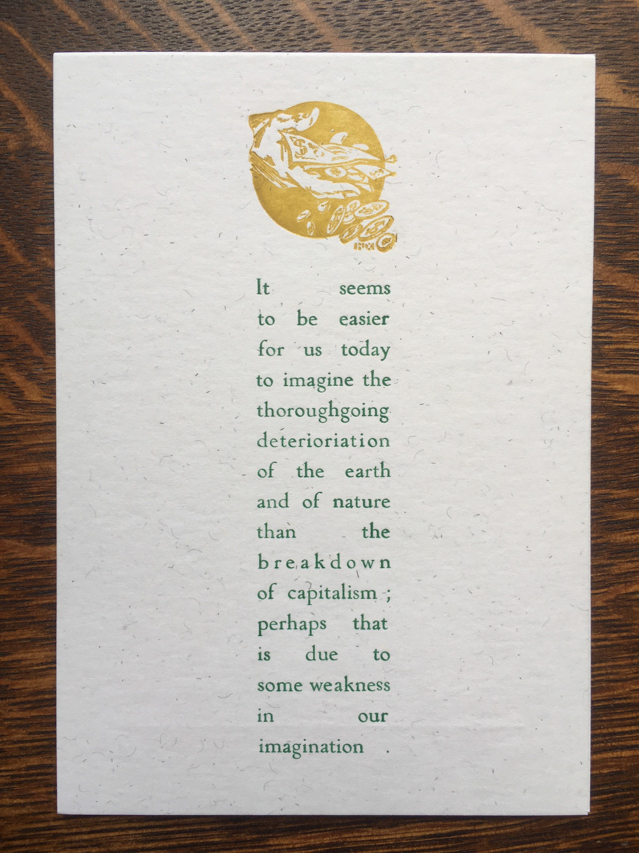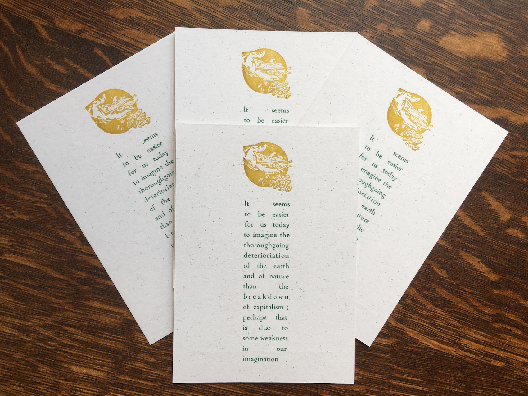 A newly printed replacement for the original card that I made a couple of years ago, with the hand throwing money around now printed in gold.