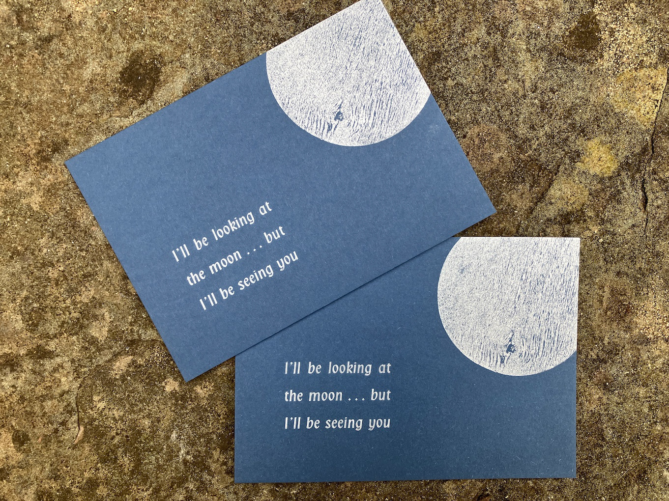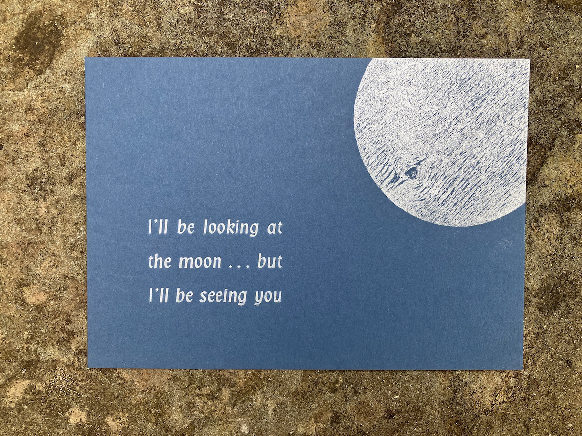 A moon card, printed for the recent moon printing event in Hay Castle.