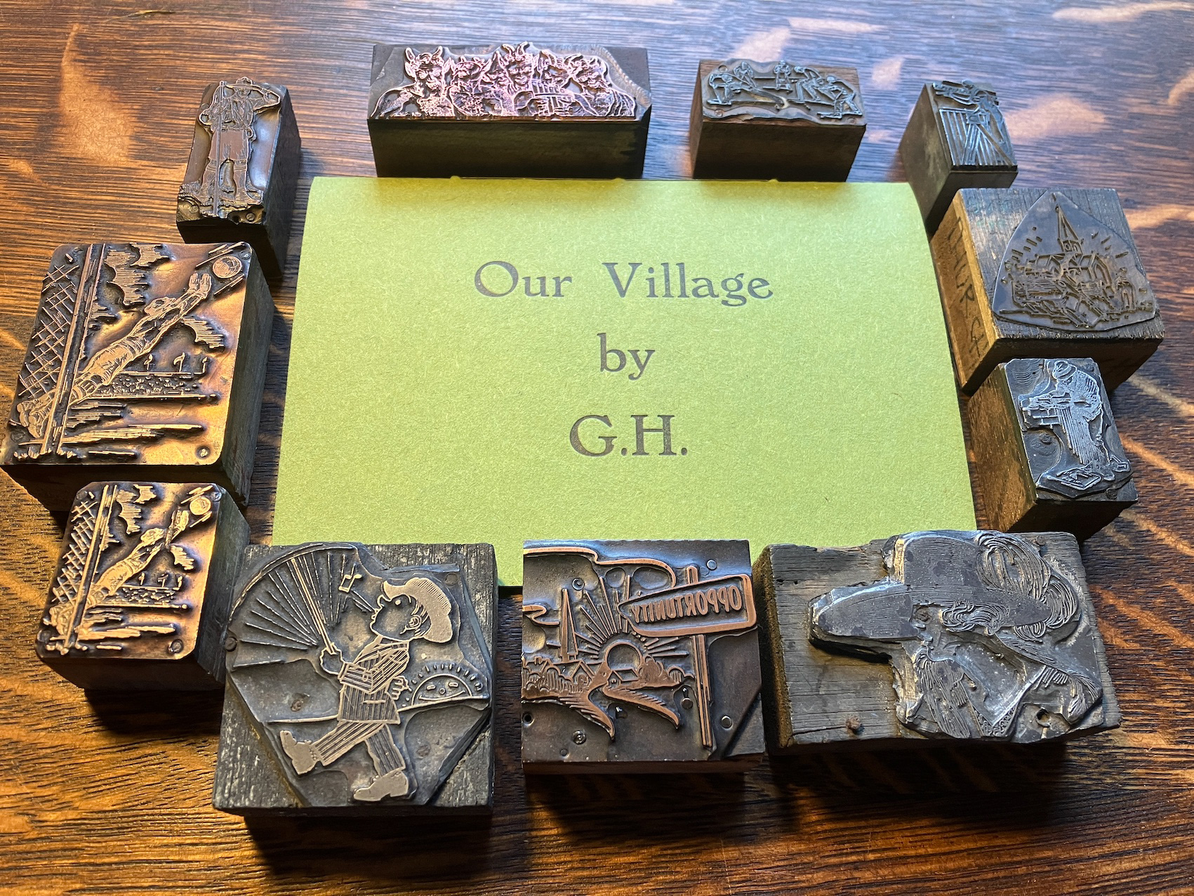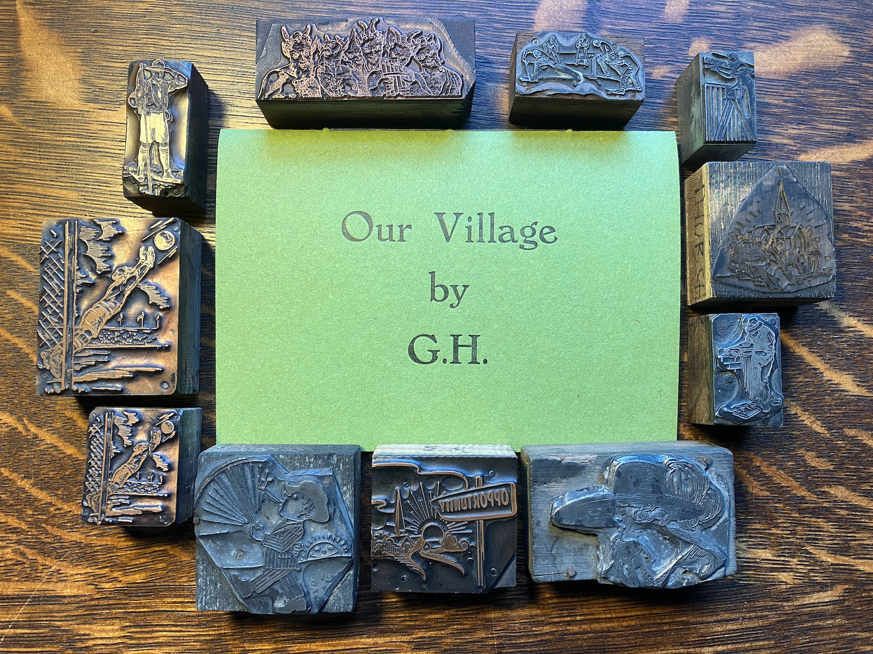 A little chapbook printed with hand-set metal type and the antique image blocks shown in the picture above.